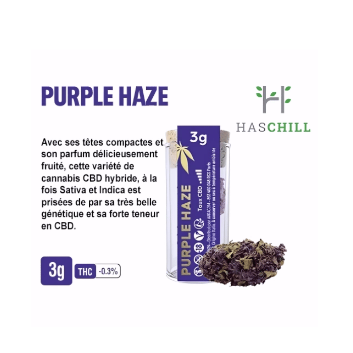 Découvrez la délicieuse sensation des fleurs de CBD Purple Haze par Haschill, maintenant disponibles au Tabac des Battières à un prix vraiment pas cher. Ces têtes compactes vous transporteront dans un univers fruité incomparable.